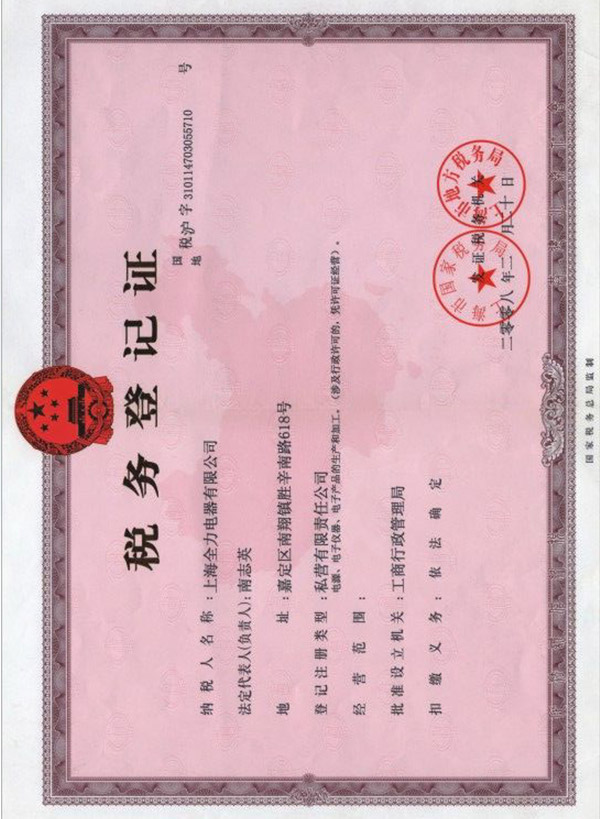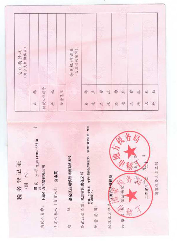 • 稅務登記證