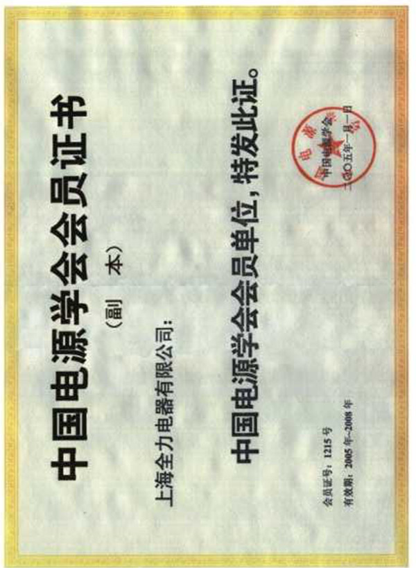 中國電源學會會員證書