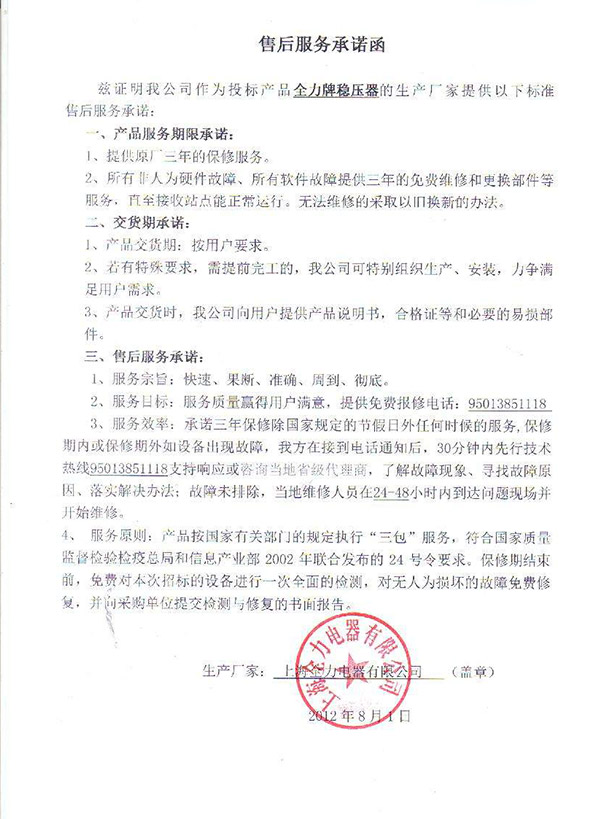 售后服務承諾